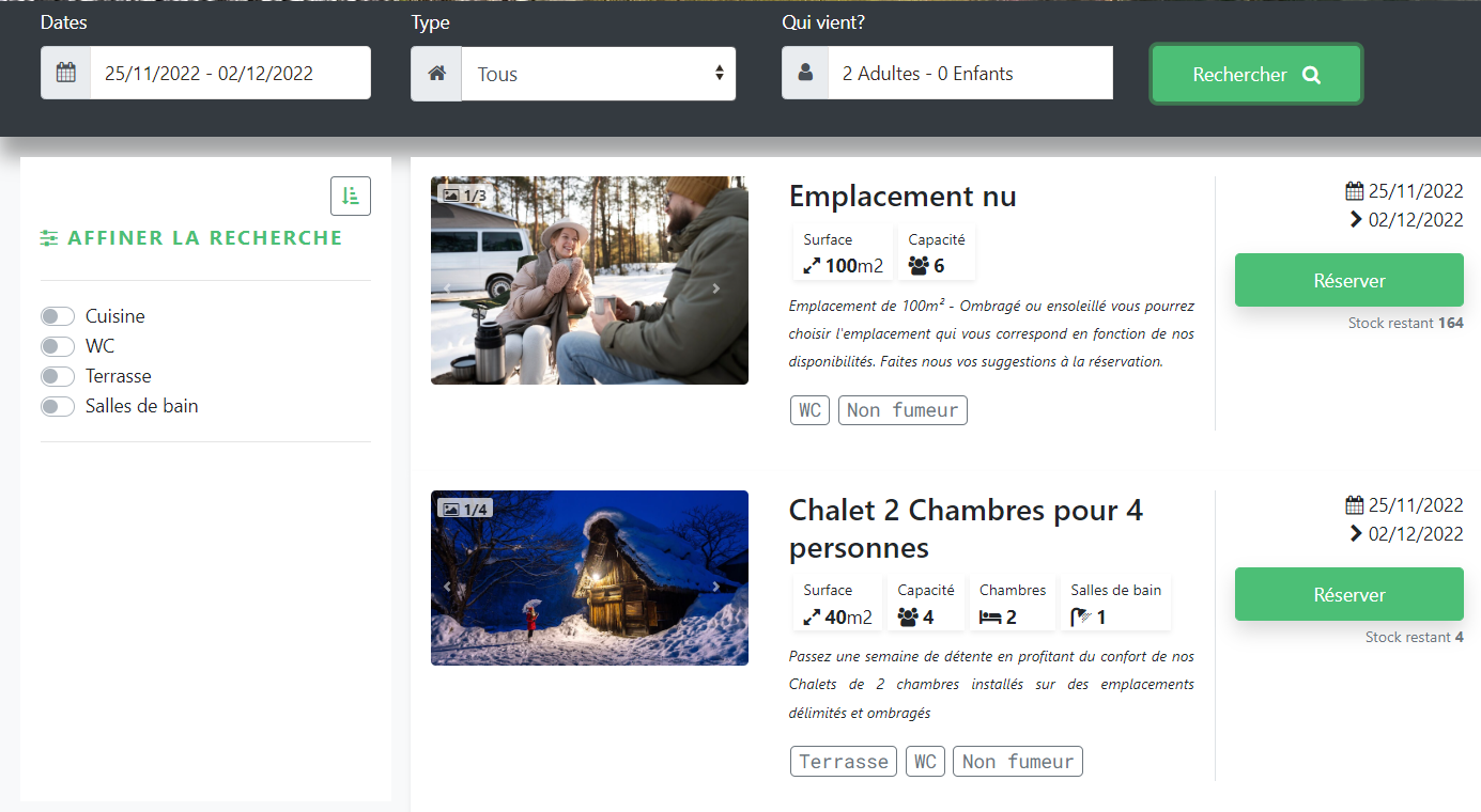 Bonne nouvelle : la réservation en ligne tient compte du stock disponible de vos suppléments ! La réservation d’un supplément disposant d’un stock paramétré sera possible que si vous avez du stock disponible durant le séjour. Pratique pour gérer vos kits bébé, frigidaires…
