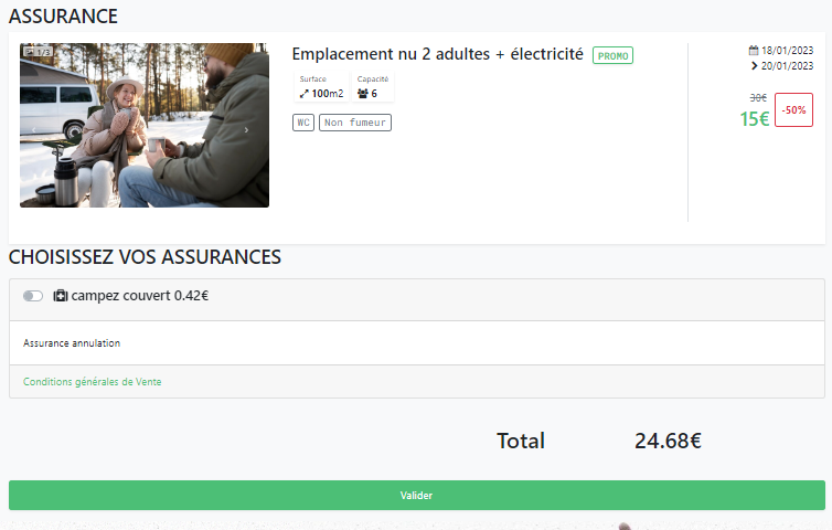 Si vous proposez une assurance annulation, c’est à cette étape que le client peut la sélectionner :