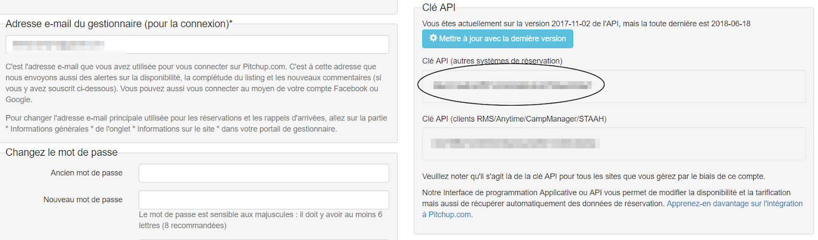 Cette clé est disponible dans votre compte Pitchup, en cliquant sur Moi > Mes coordonnées > Clé API.