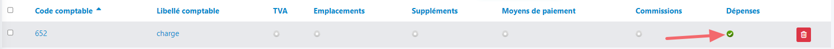 Pour pouvoir afficher un code comptable, ajouter le comme une dépense depuis l'écran Paramètres > Code comptable