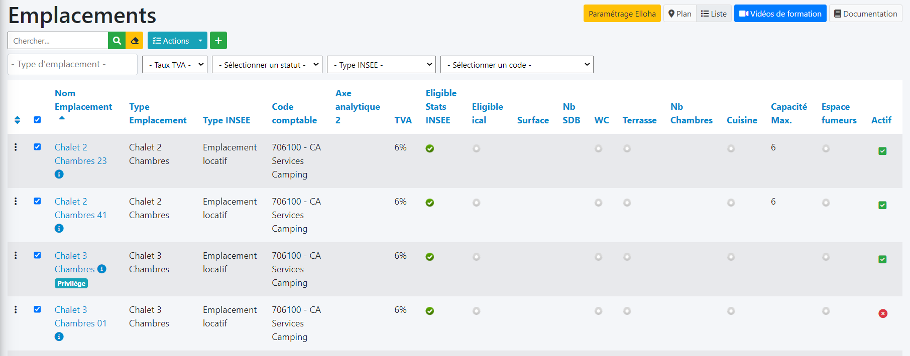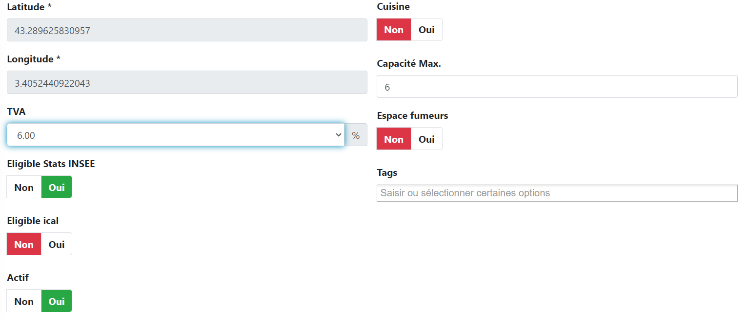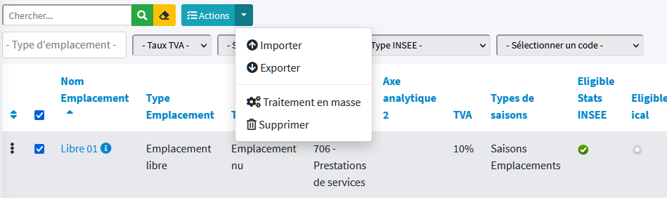 Eligible Stats insee : Indique si les emplacements sont pris en compte dans le calcul des stats insee