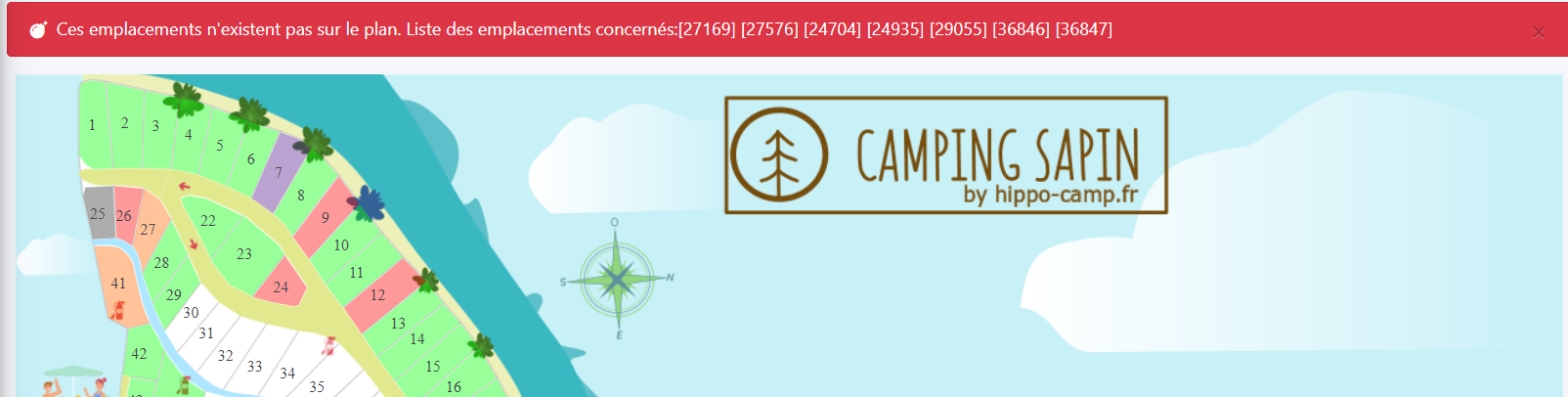 Note : après création des emplacements, HippoCamp vous rappelle que les tarifs n’ont pas encore été créés pour les nouveaux emplacements. Pour plus d’informations, reportez-vous à la documentation de l’écran Paramètres > Prix des Emplacements ou à la procédure Mise à jour des tarifs dans HippoCamp