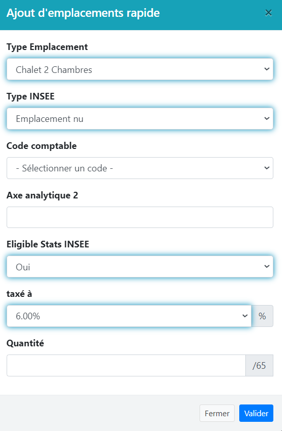 Quantité : le nombre d’emplacements à créer