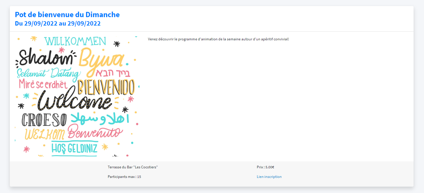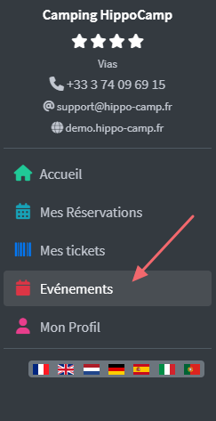 A partir de l’espace “client” le voyageur peut consulter la liste des événements/animations durant son séjour dans votre établissement.