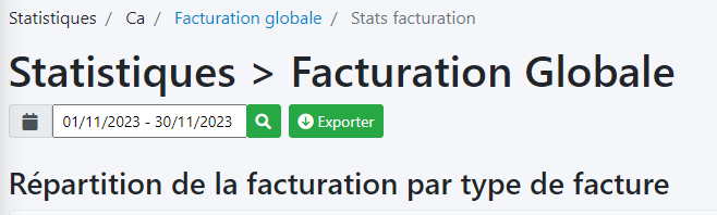Accessible depuis le menu Statistiques > Facturation globale