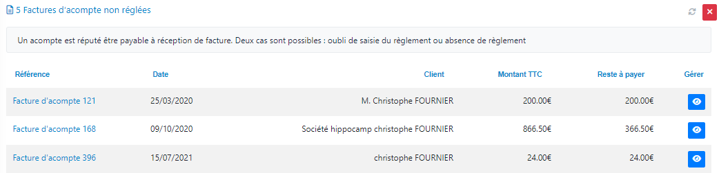 Le bouton de la colonne « gérer » vous permet d'accéder directement à la facture en question.