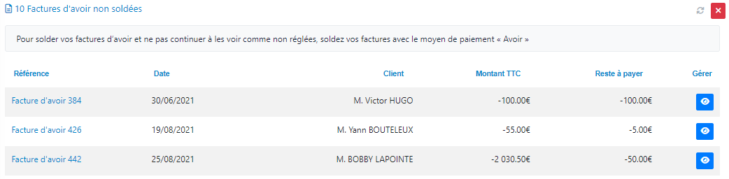 ➡️ Factures d'avoir non soldées
