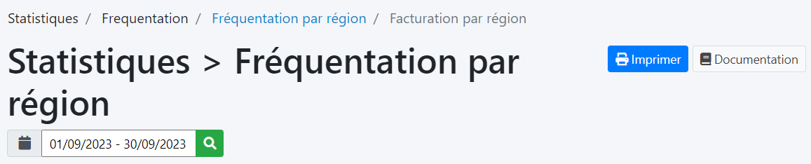 Accessible depuis le menu Statistiques > Fréquentation par région
