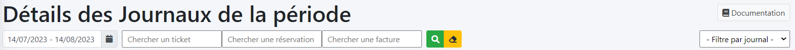 Par défaut, la période de recherche concerne le mois en cours. Vous modifiez facilement la période de recherche à l’aide des champ préfixés par « Du » et « Au ».