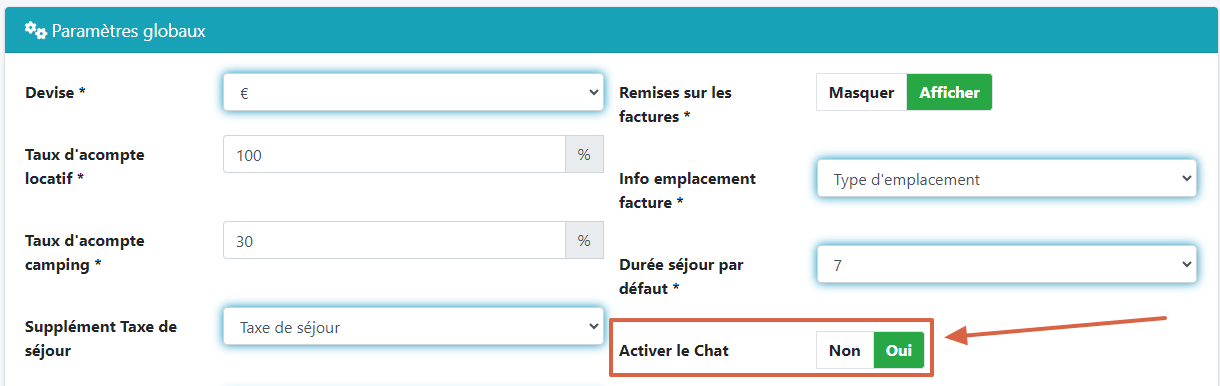 Pour utiliser la Messagerie, il est nécessaire de l’activer depuis l'écran Paramètres > Préférences : Paramètres Globaux