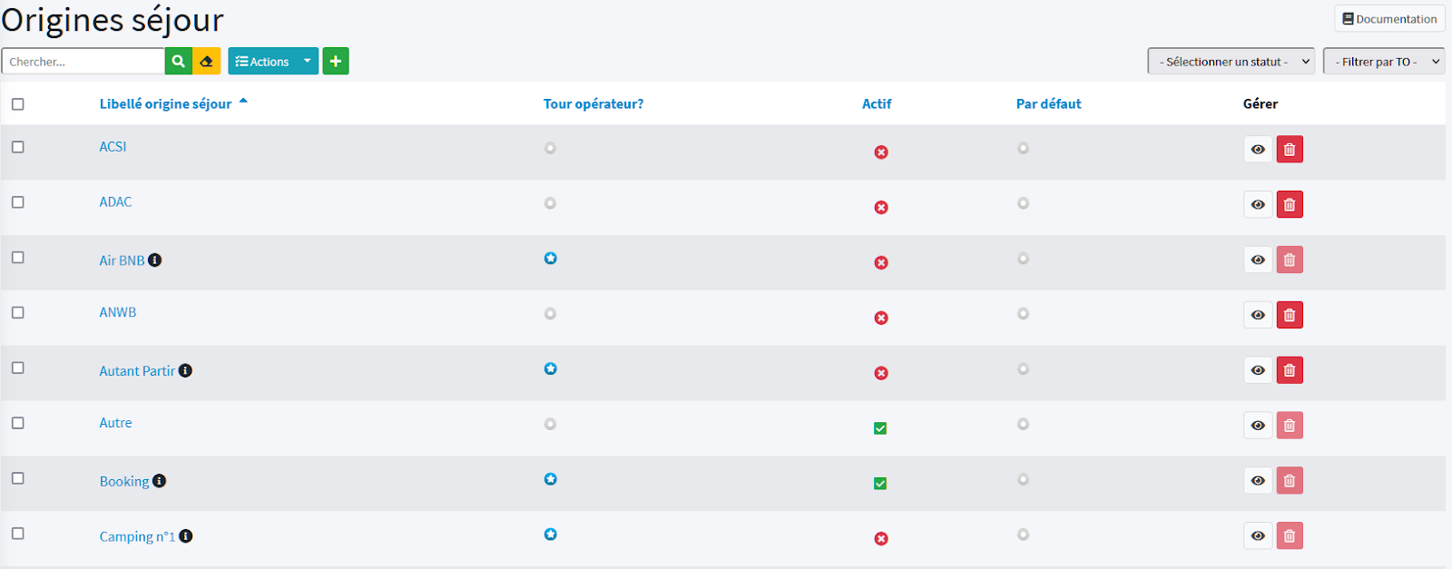 Par défaut : Si oui, alors cette origine séjour est utilisée par défaut lors de la création d’un séjour
