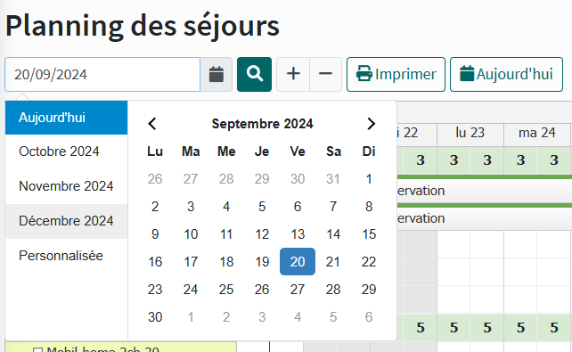 Accessible depuis le menu Gestion > Planning des Séjours, il vous permet de visualiser l'occupation de votre camping en un clin d'œil.