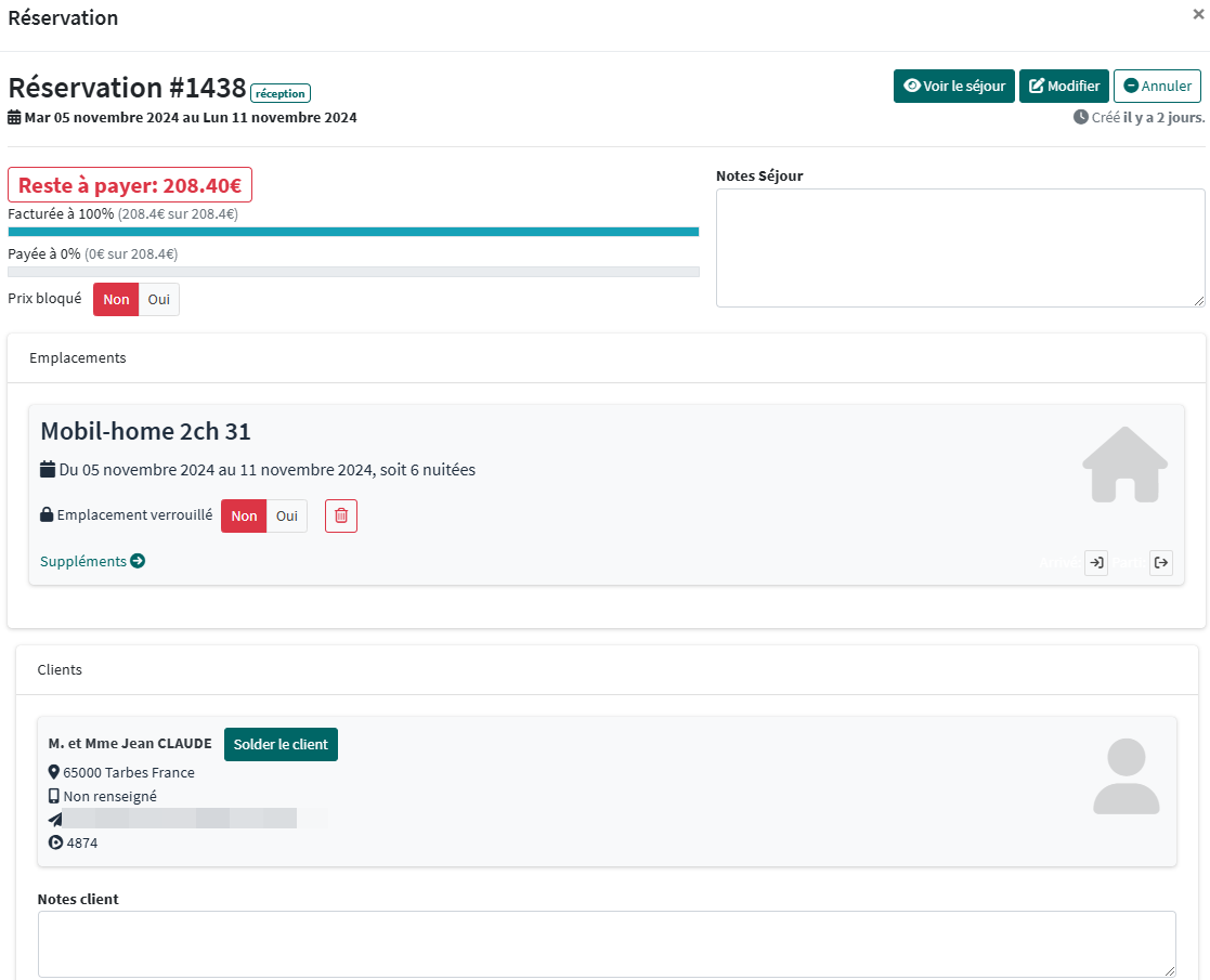 Par défaut, le tarif des séjours créés dans HippoCamp n'est pas bloqué. A l'inverse, les séjours intégrés via une passerelle de vente (CToutVert, Pitchup, etc…) ont par défaut un tarif bloqué. En effet, le tarif d'un tour opérateur n'est pas forcément le même que celui défini dans HippoCamp. Ainsi, grâce à cette fonctionnalité, vous pouvez optimiser le remplissage de votre planning en déplaçant les séjours des tours opérateurs sans risquer de perdre le tarif initial.