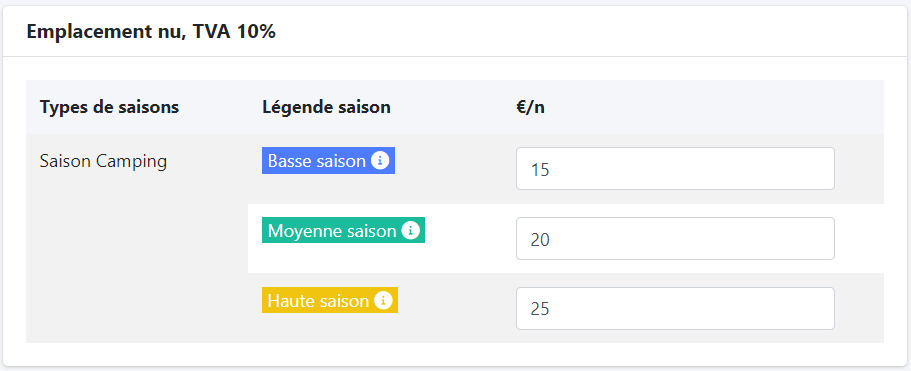 Remarque : Vous entrez les tarifs TTC, HippoCamp se charge de l’enregistrement en HT