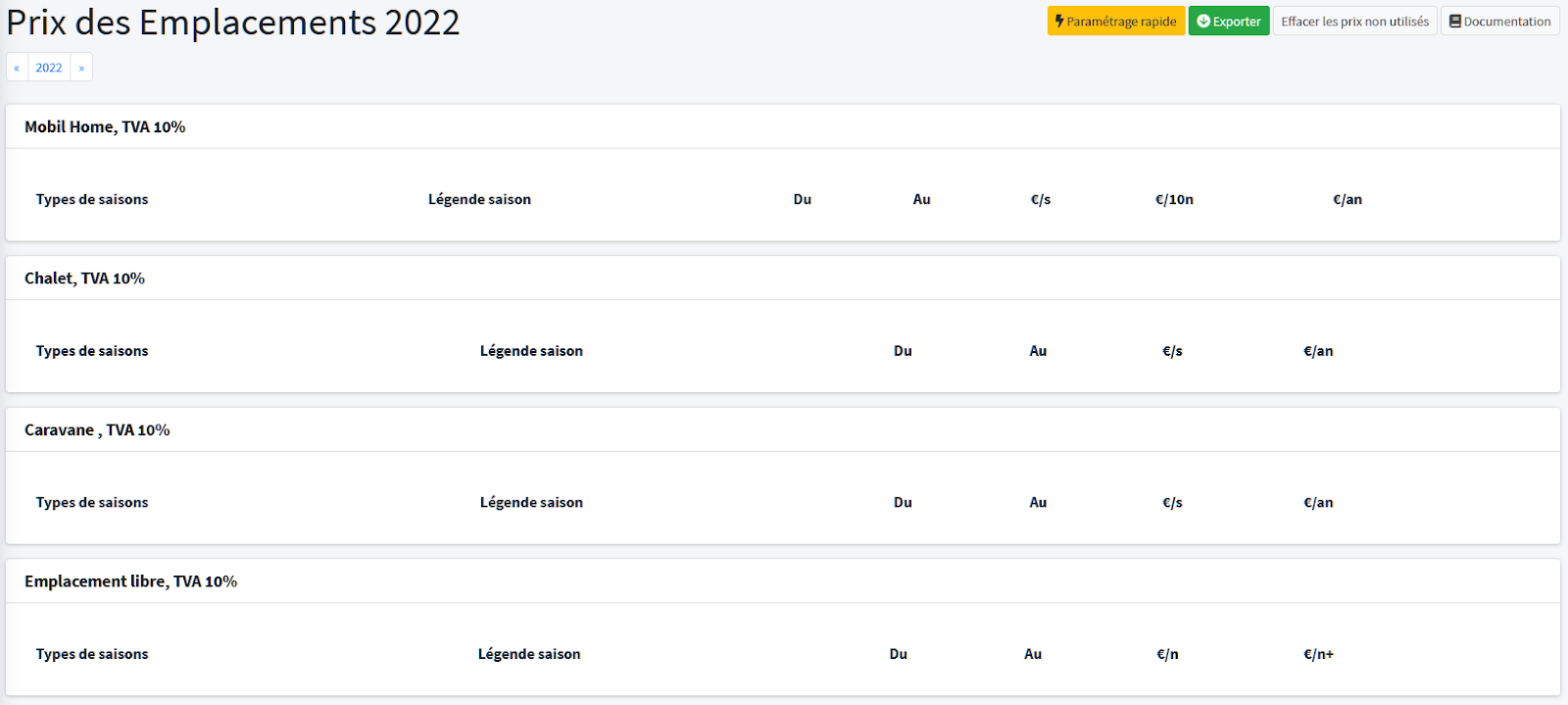 Vous vous rendez dans l’écran Paramètres > Prix des emplacements