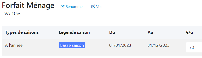 En effet, le tarif est défini pour une période donnée, en TTC et en HT, pour un supplément donné.