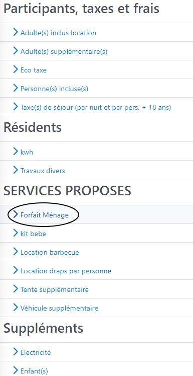 Je clique sur le supplément Forfait Ménage situé sur la partie gauche de l’écran