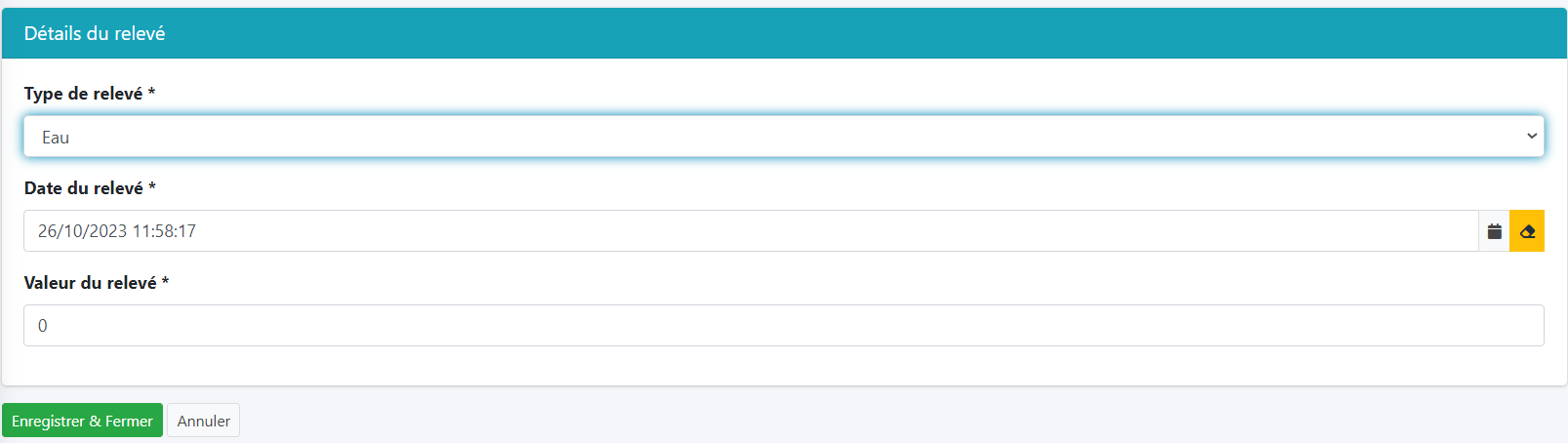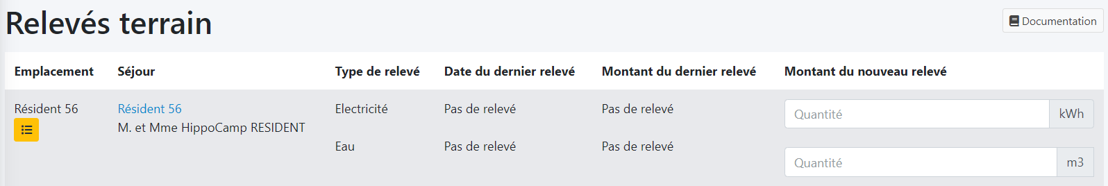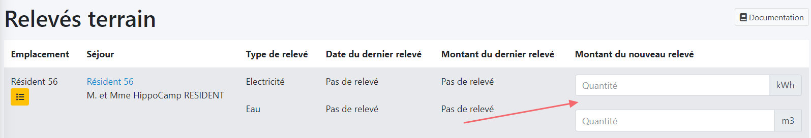 Cet outil vous permet de saisir les valeurs des compteurs d’eau et d'électricité de vos séjours de type Résidents.