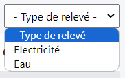 ![]() | Le menu déroulant - Type de relevé - vous permet d’afficher uniquement l’historique des relevés d’eau ou d'électricité. |