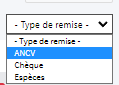 A droite de l'écran un filtre « Type de remise » vous permet de préciser le type de remise recherché (remise de chèque bancaire ou ANCV ou espèces).