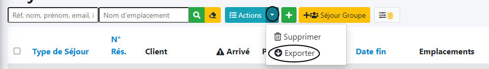 Les séjours exportés sont tous ceux ayant cours entre les dates de début et de fin précédemment renseignées.