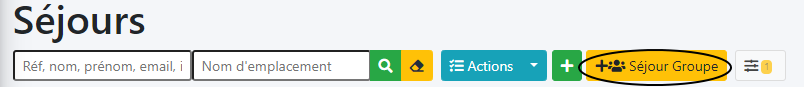 Champ de recherche Nom d’emplacement : permets d’afficher l’ensemble des séjours se déroulant sur l’emplacement recherché | ![]() |