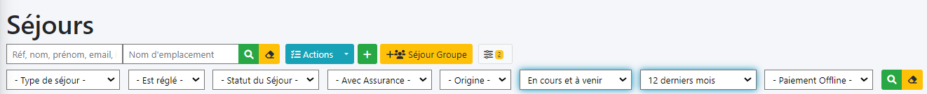 Par défaut, le logiciel affiche les séjours créés depuis les 12 derniers mois.