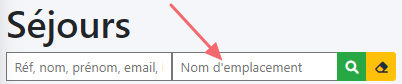 Champ de recherche Nom d'emplacement : permets d'afficher l'ensemble des séjours se déroulant sur l'emplacement recherché | ![]() |
