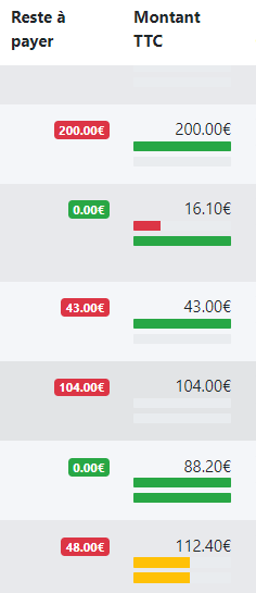 Signification des barres de progression dans la colonne Montant TTC