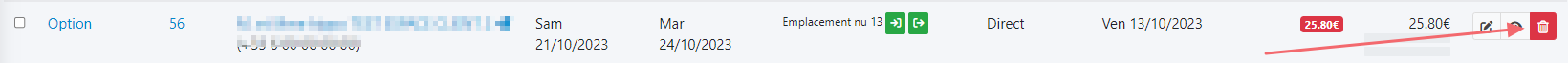Pastille avec numéro : indique la référence externe du séjour. Ex : réf ctoutvert 123456 ou réf Pitchup XAJSDHE.