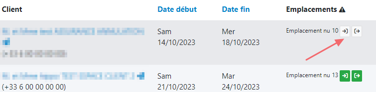 Lorsque le check-in de votre client est effectué, vous cliquez sur l'icône Arrivée.