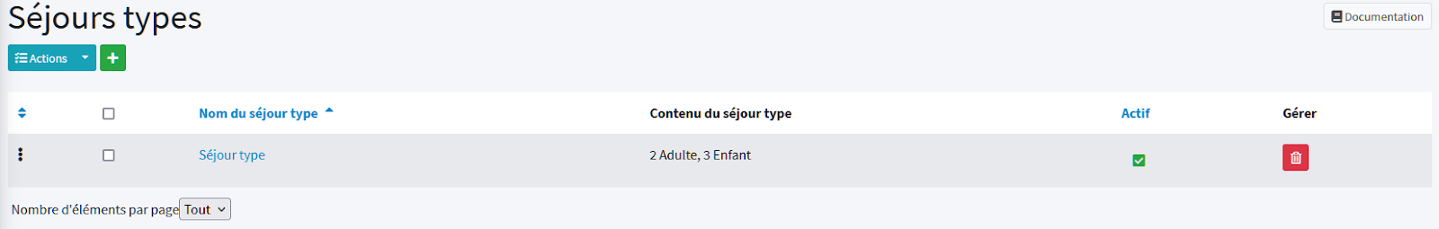 Depuis cet écran, vous visualisez les séjours types déjà créés dans le logiciel.