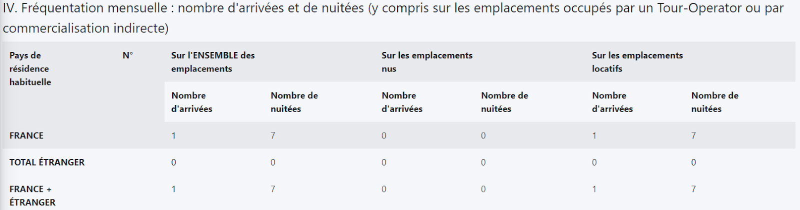 Dans cette section, le logiciel comptabilise le nombre d’arrivées et de nuitées du mois considéré pour chaque nationalité.