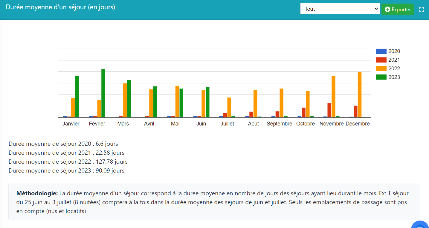 Une liste à puces située sous le graphique vous affiche la durée moyenne d’un séjour par année