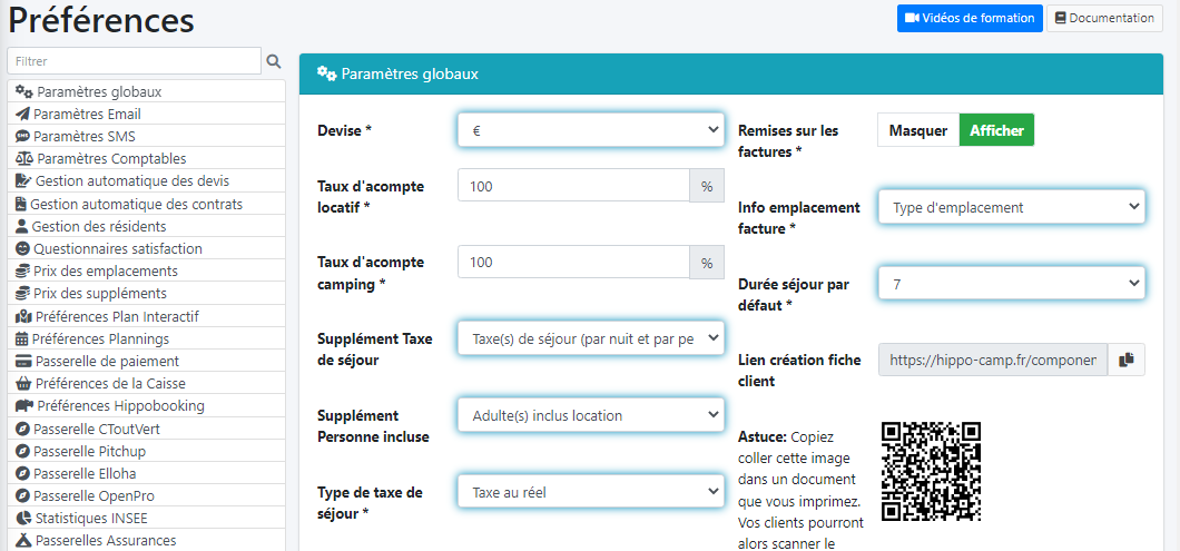 HippoCamp permet la gestion de la collecte et du reversement de la taxe de séjour. Cette fonctionnalité repose sur un paramétrage précis.