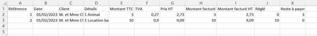 Vous retrouvez l’export des séjours dans le répertoire des Téléchargements (Windows). Le fichier respecte la convention de nommage suivante : AAAA-MM-JJ_ExportVentesAnnexes.csv